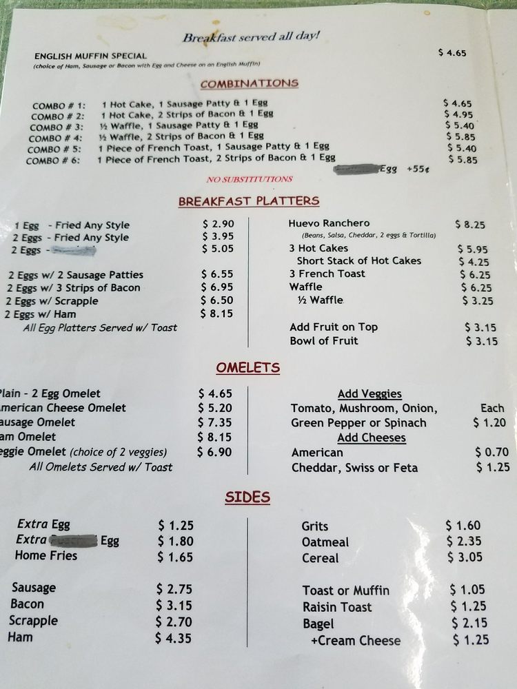 Choice of two (Tomato, Mushroom, Onion, Green Pepper, or Spinach). Served with toast (White or Wheat).
